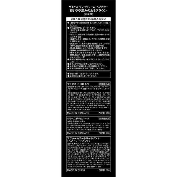 사이오스 클레이 크림 헤어 컬러 5N 약간 깊은 브라운 50g+50g 헨켈재팬 > 백발용 크림