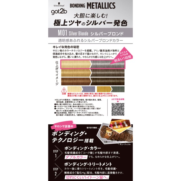 got2b 본딩 메탈릭스 헤어 컬러 실버 블론드 55g+110mL+15 헨켈재팬 > 흑발용 헤어 컬러