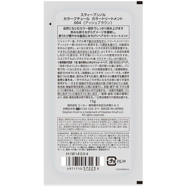 스티브 놀 컬러 쿠튀르 컬러 트리트먼트 004 애시 브라운 15g 코세 > 백발용 컬러 트리트먼트