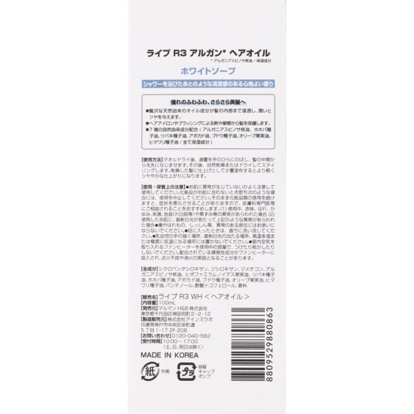 라이프 R3 아르간 헤어 오일 화이트 솝 100ml > 기타 헤어 오일·리퀴드