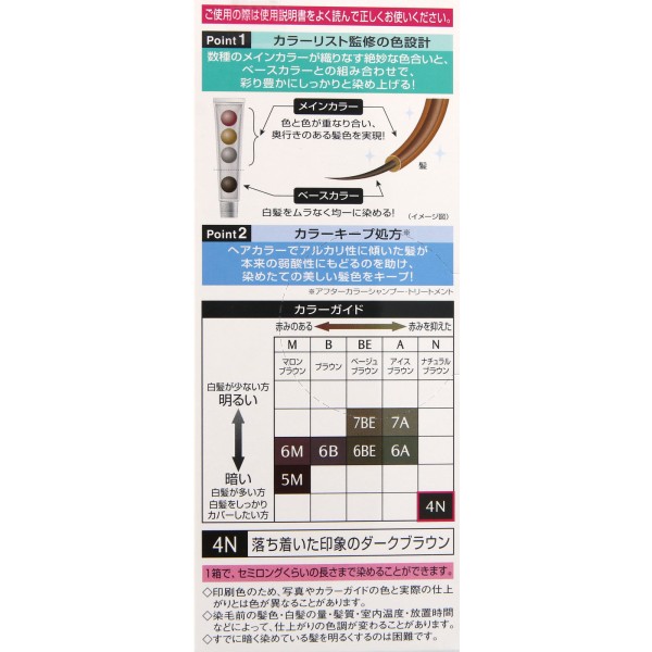 伸びがよく、液だれしにくいベースで手早く簡単に広範囲を染められる液状タイプのヘアカラー。