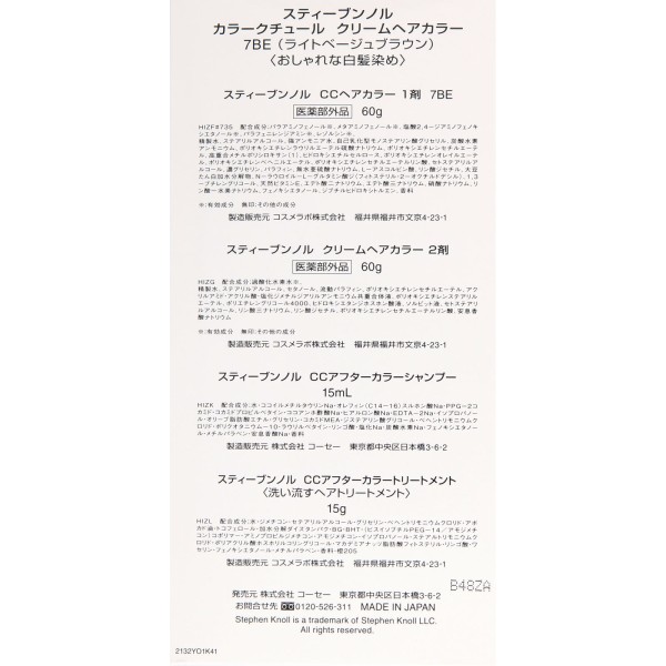 스티브 놀 컬러 쿠튀르 크림 헤어 컬러 7BE 라이트 베이지 브라운 코세 > 백발용 크림