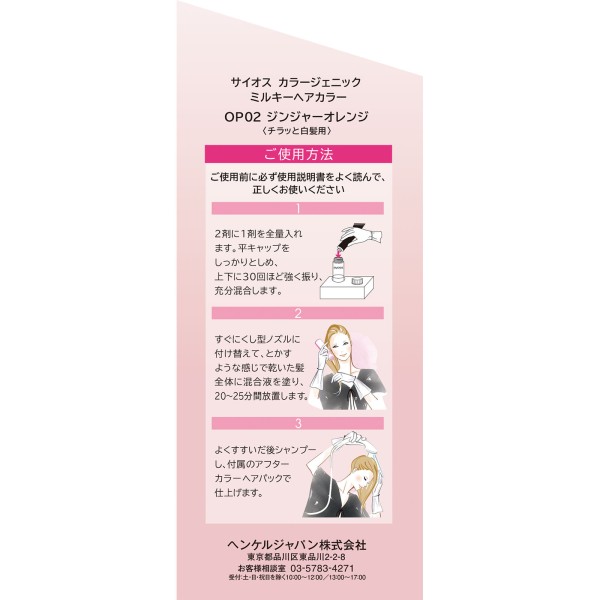 사이오스 컬러제닉 밀키 헤어 컬러 OP02 진저 오렌지 50g 100mL 15g 헨켈재팬 > 백발용 액상