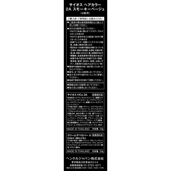 사이오스 헤어 컬러 크림 2A 스모키 베이지 50g+50g 헨켈재팬 > 백발용 크림