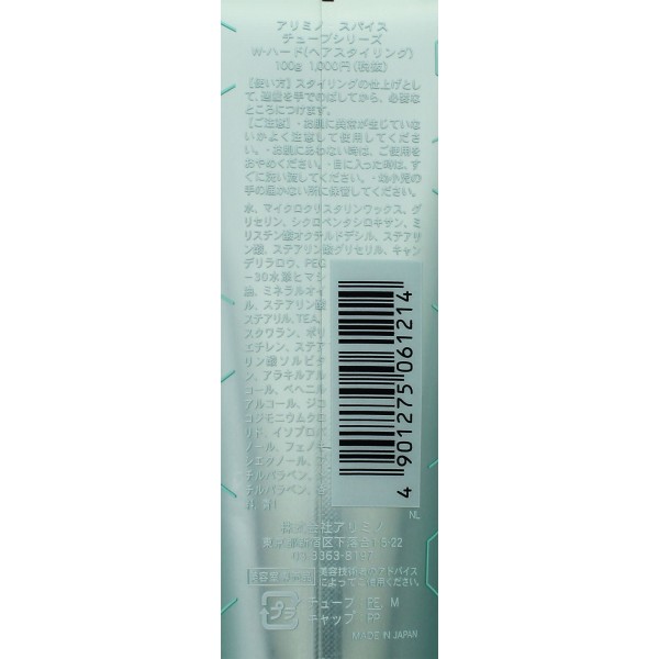 아리미노 스파이스 튜브 시리즈 W-하드 100G > 기타 헤어 왁스