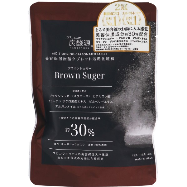 化粧品に認定された美容保湿炭酸タブレット「ブラウンシュガー」は、1錠あたり保湿成分配合率約30%。
