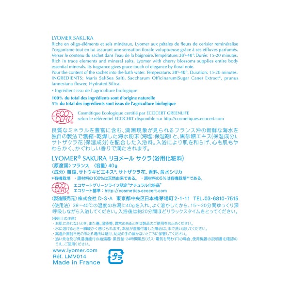 フランス産海塩とサクラ粉末を配合した100%オーガニック認証バスパウダー。