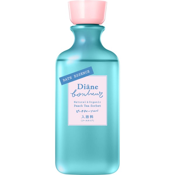 オーガニックエキス配合でサラッとすべすべ肌に。クールタイプのバスエッセンス。ピーチティーソルベの香り。