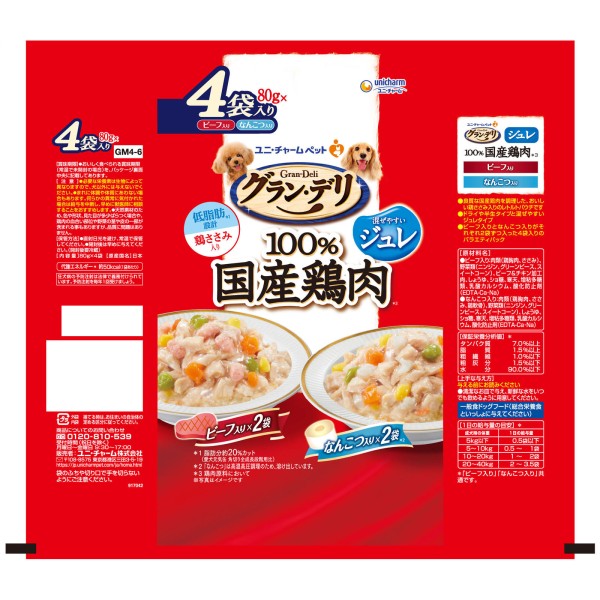 그랑 드리 파우치 주레 소고기 연골 80g×4P 유니참 펫케어 > 레토르트 (유견용)