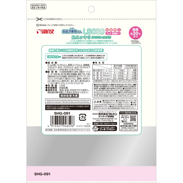 곤타 양치 전용 껌 L8020 C 클로로 저지방 120g > 덴탈 케어 (유견·성견용)
