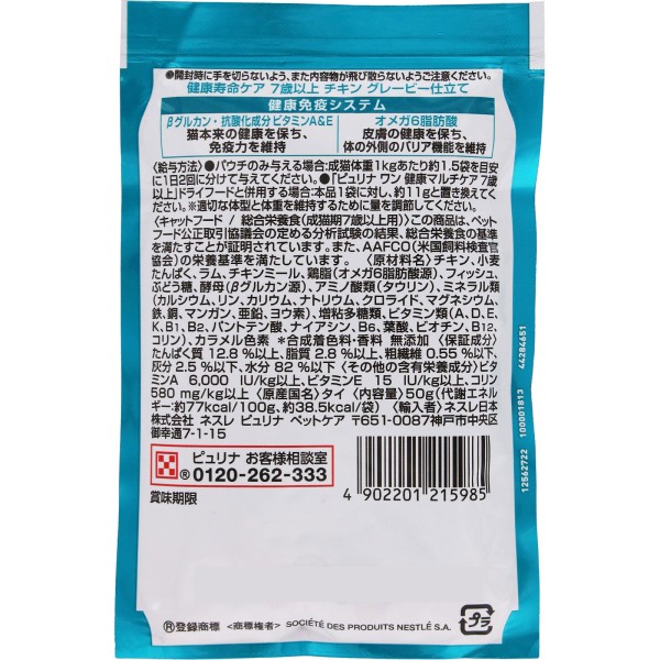 퓨리나 원 캣 파우치 7세 치킨 그레이비 50g 네슬레 재팬 > 레토르트 (기능성 식품)