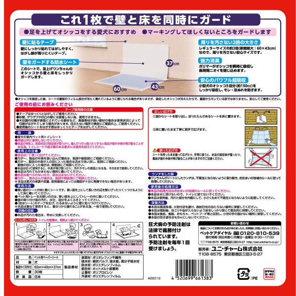 발 드는 강아지용 벽 붙이는 가드 부착 와이드 30매 유니참 펫케어 > 고기능
