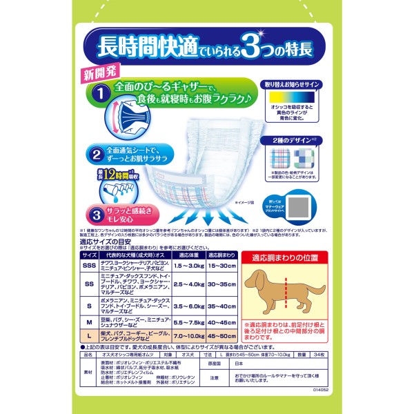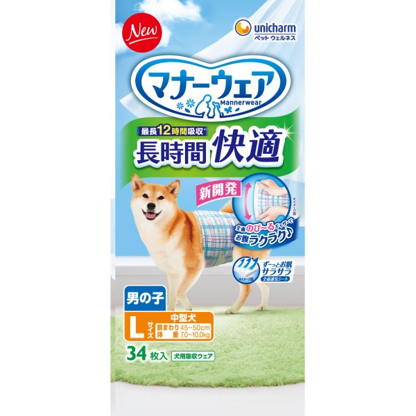 매너웨어 장시간 쾌적 기저귀 남자아이용 L 34매 유니참 펫케어