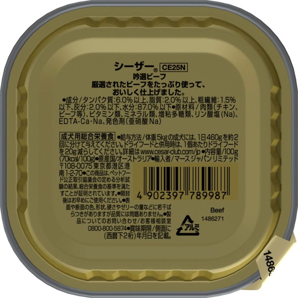 시저 엄선 소고기 100g 마스재팬 리미티드 > 알루미늄 트레이 (성견용)