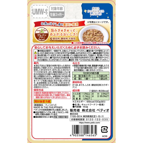 피쉬 마로 가다랑어&참치 실치 함유 60g > 레토르트 (성묘용)