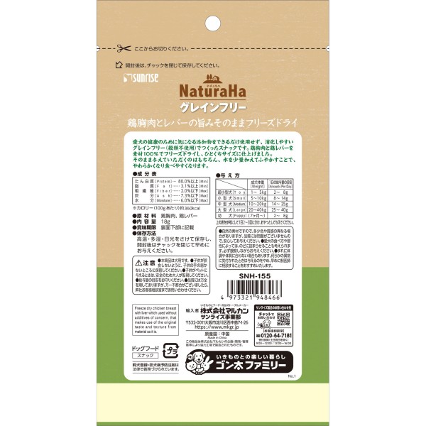 나추라하 가슴살과 간의 맛 동결건조 18g > 저키·축육 (유견·성견용)