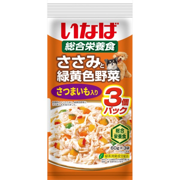 닭 안심과 녹황색 야채 고구마 함유 60g×3 이나바식품 > 레토르트 (성견용)