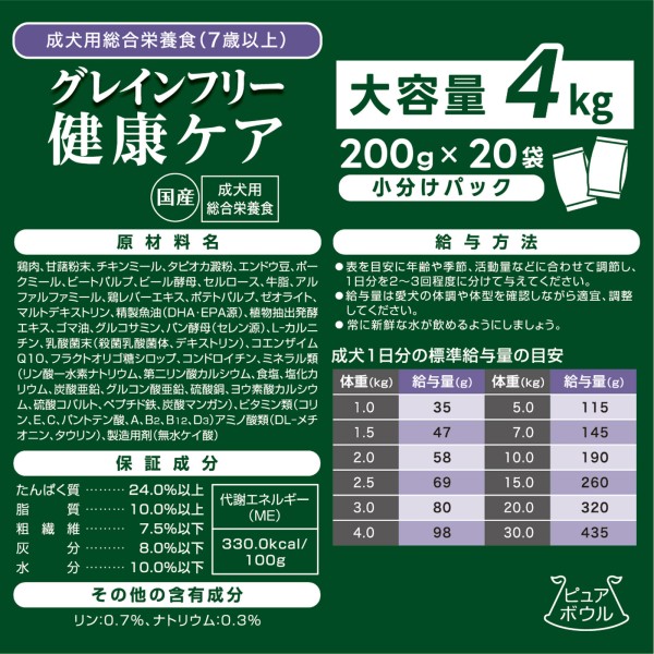 퓨어 볼 그레인 프리 7세 성견용 대용량 4kg (200g×20) > 구르메 (기능성 식품)