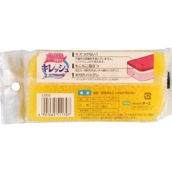 早く乾いて清潔衛生的もこもこ泡立つしっかり水切れ速乾スポンジ。