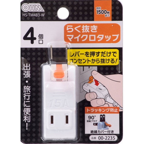 편하게 빼는 마이크로 탭 4구 HS-TM4B3-W 옴전기 > 멀티탭
