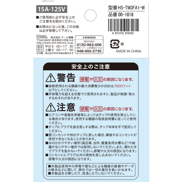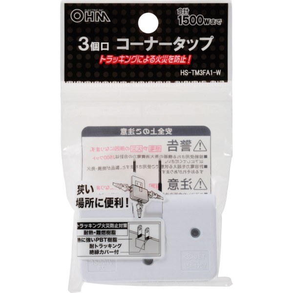 OHM 3구 코너 탭 화이트 HS-TM3FA1-W 옴전기 > 멀티탭