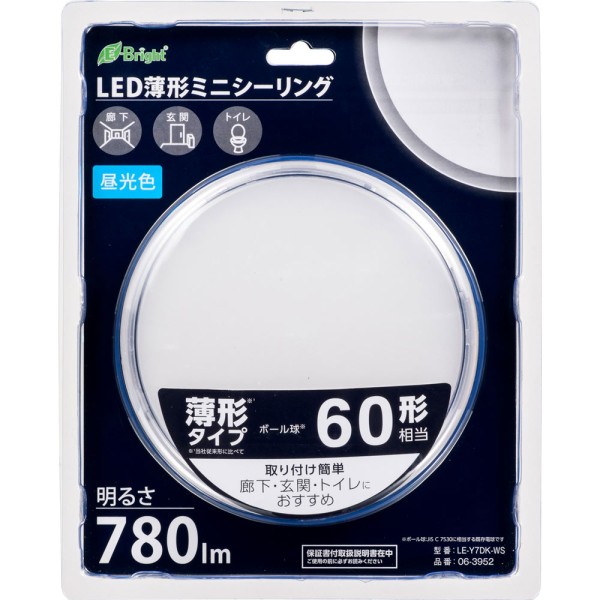 옴전기 얇은 LED 미니 씰링 60W 상당 주광색 LE-Y7DK-WS 옴전기 > LED 형광등