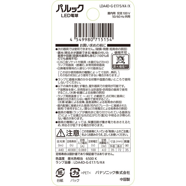 파루크 베이식 LED 전구 E17 40W형 주광 파나소닉 > LED 전구