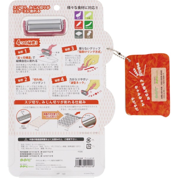 包丁を使わずにみじん切り、スジ切り、千切り、皮むきができるピーラーです。