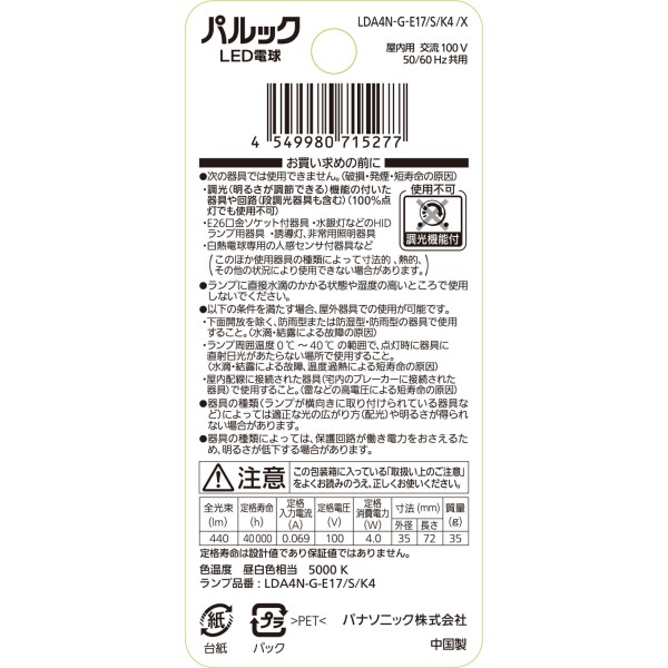 파루크 베이식 LED 전구 E17 40W형 주백 파나소닉 > LED 전구