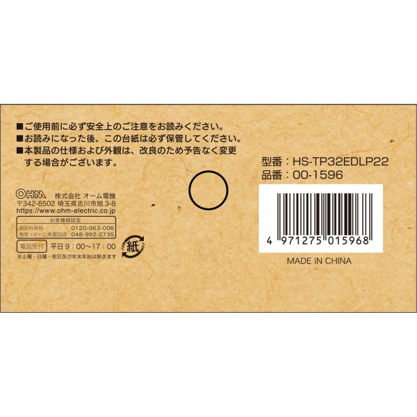 OHM 3구 2m 절전 탭 EDLP HS-TP32EDLP2 옴전기 > 멀티탭