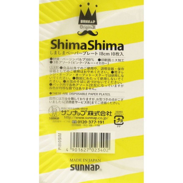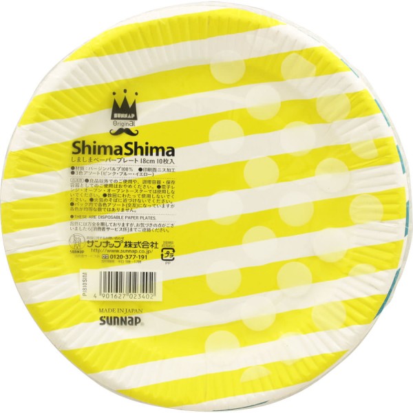 よこしまのピンク・イエロー・ブルーの3色アソートのペーパープレート。使い易い飽きのこないデザインで、3色のため使い分けにも便利