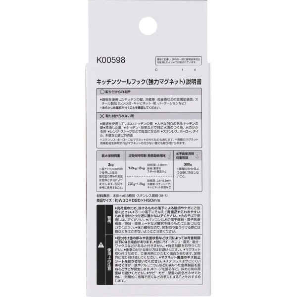 주방용 도구 훅 강력 마그넷 BK 2개입 > 주방 범용 훅 (마그네트)