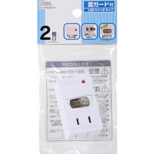 2구 탭 뇌 LED 스위치 PB HS-TMK2B2-W 옴전기 > 멀티탭