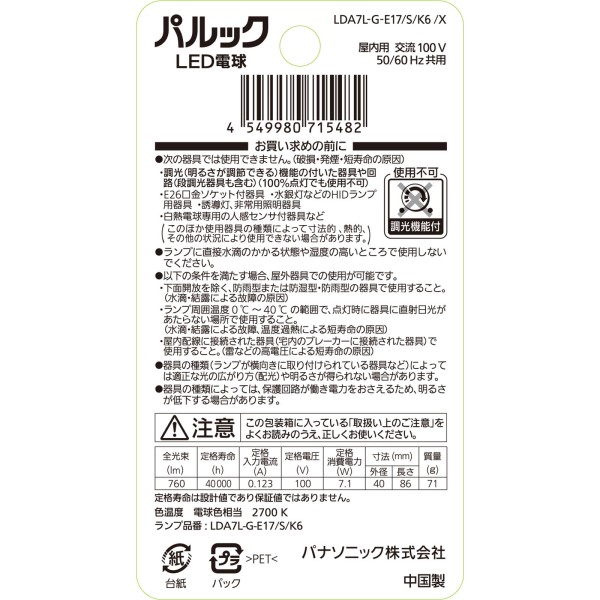 파루크 베이식 LED 전구 E17 60W형 전구 파나소닉 > LED 전구