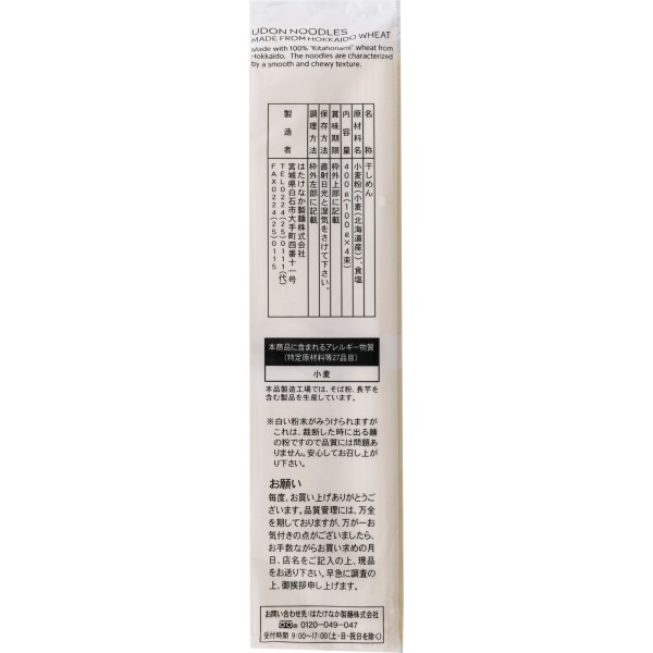 麺用粉では国産の中でも最適な北海道産小麦きたほなみを100%使用しました。
