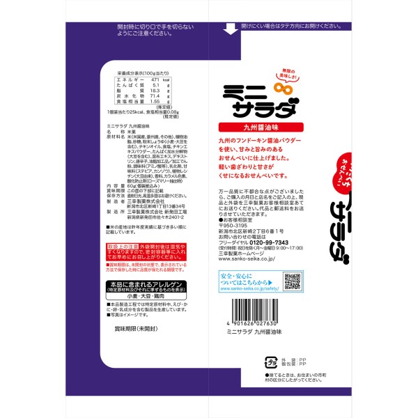 九州のフンドーキン醤油を使用した、甘みと旨味が広がる濃厚な九州醤油味のふたくちサイズのミニサラダです。