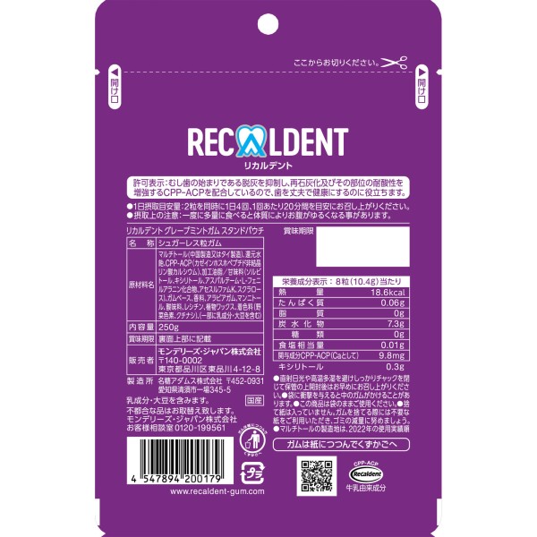 리카르덴트 그레이프 민트껌 스탠드 파우치 250g > 기타