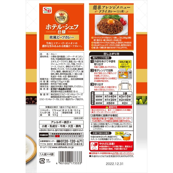 호텔 셰프 사양 서양식 비프카레 4개 팩 단맛 680g > 카레·하야시