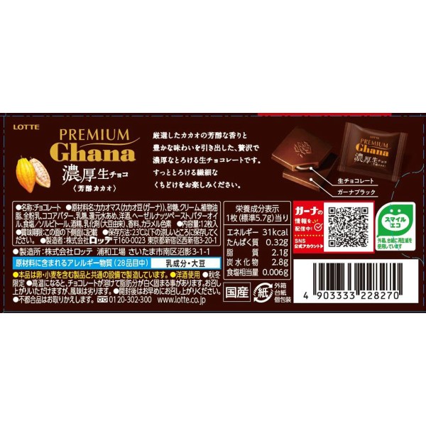 프리미엄 가나 진한 생초콜릿 향기로운 카카오 12매 > 센터인