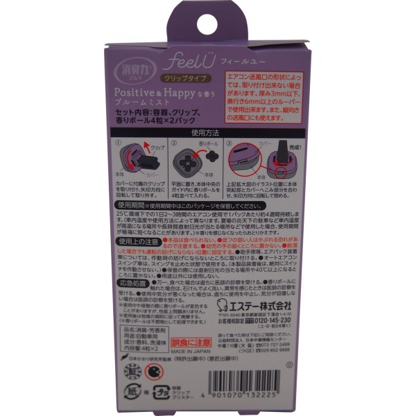 탈취력 차량용 feelU 본체 블룸미스트 클립타입 2회분 > 차내 방향제·탈취제 놓는형(액체·젤·고형)