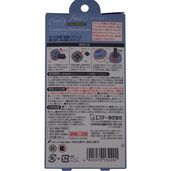 탈취력 차량용 feelU 본체 에크뤼 사봉 클립타입 2회분 > 차내 방향제·탈취제 놓는형(액체·젤·고형)