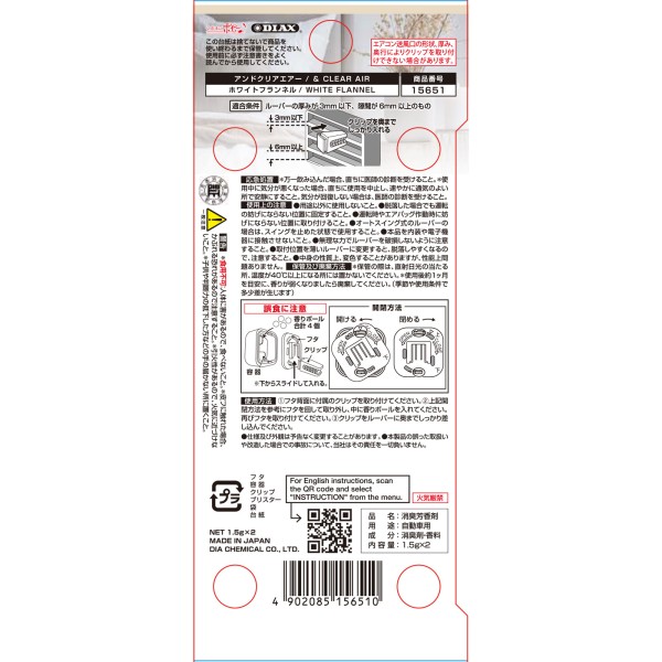 앤드 클리어 에어 화이트 플란넬 2개 > 차내 방향제·탈취제 페이퍼 타입