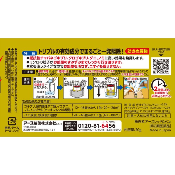 아스레드 프로알파 12~16다다미용 바퀴벌레 해충구제 살충제 훈연타입 20g > 연기 타입
