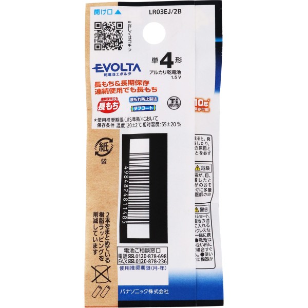 파나소닉 EVOLTA 건전지 단4형 2개입 LR03EJ/2B 파나소닉 > 단4