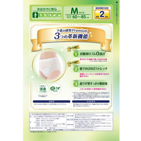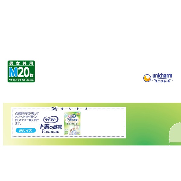 라이프리 속옷 감각 프리미엄 2회 M 20매 유니참 > 슬림형