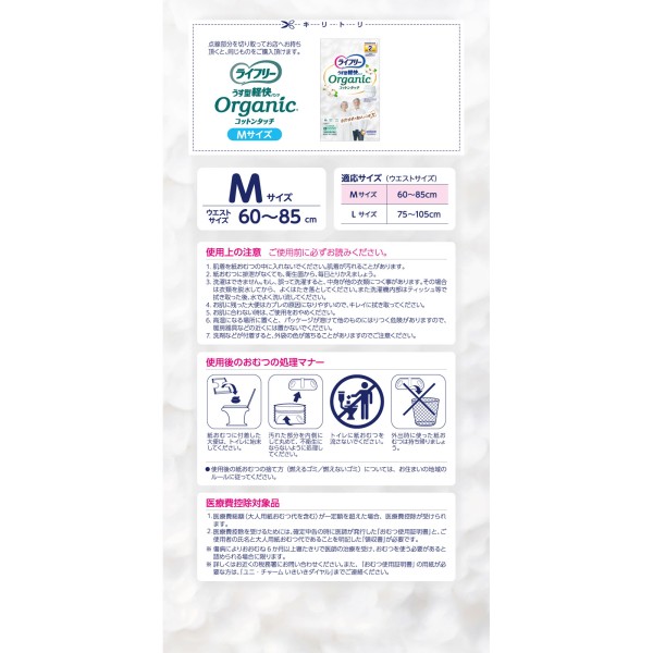 라이프리 얇은형 가벼운 팬츠 오가닉 코튼 터치 M 20매 유니참 > 슬림형