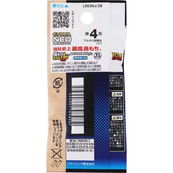 파나소닉 건전지 EVOLTA 네오 단4형 2개입 LR03NJ/2B 파나소닉 > 단4
