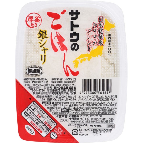 사토의 밥 긴샤리 5끼팩 200g×5 사토식품 > 백미