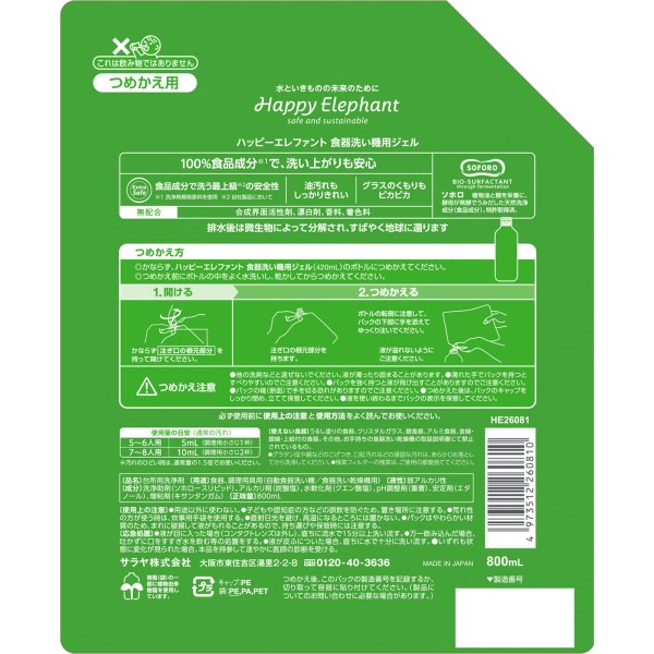 해피 엘리펀트 식기세척기용 젤 리필 800ml > 액체 세제