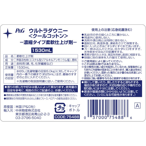 다우니 쿨 코튼 보틀 1530ml > 유연제